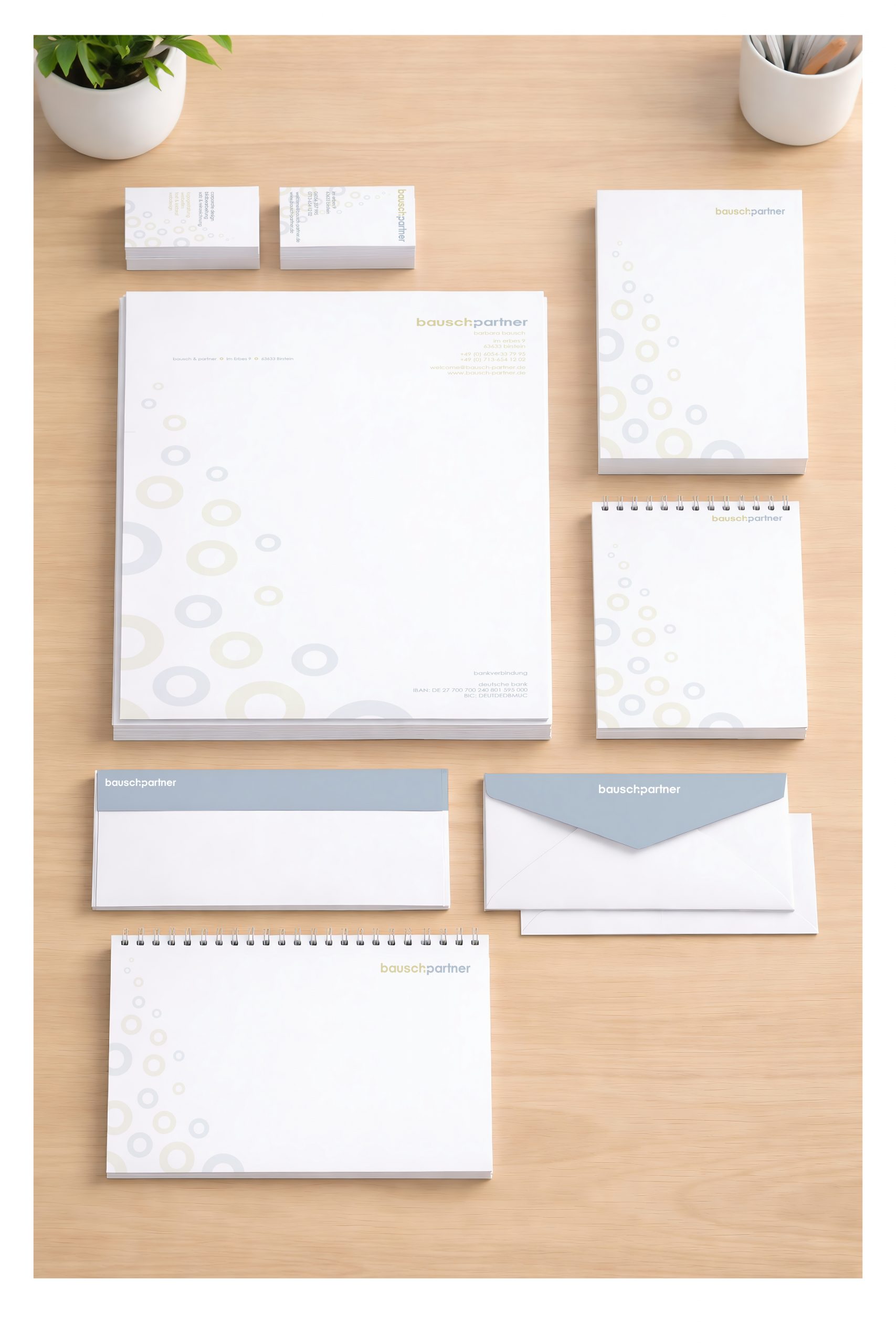 Die Geschäftsausstattung ist ein zentraler Bestandteil des Corporate Designs. Sie sorgt für einen professionellen ersten Eindruck und stärkt die Wiedererkennung in der täglichen Kommunikation mit Kundinnen und Kunden.