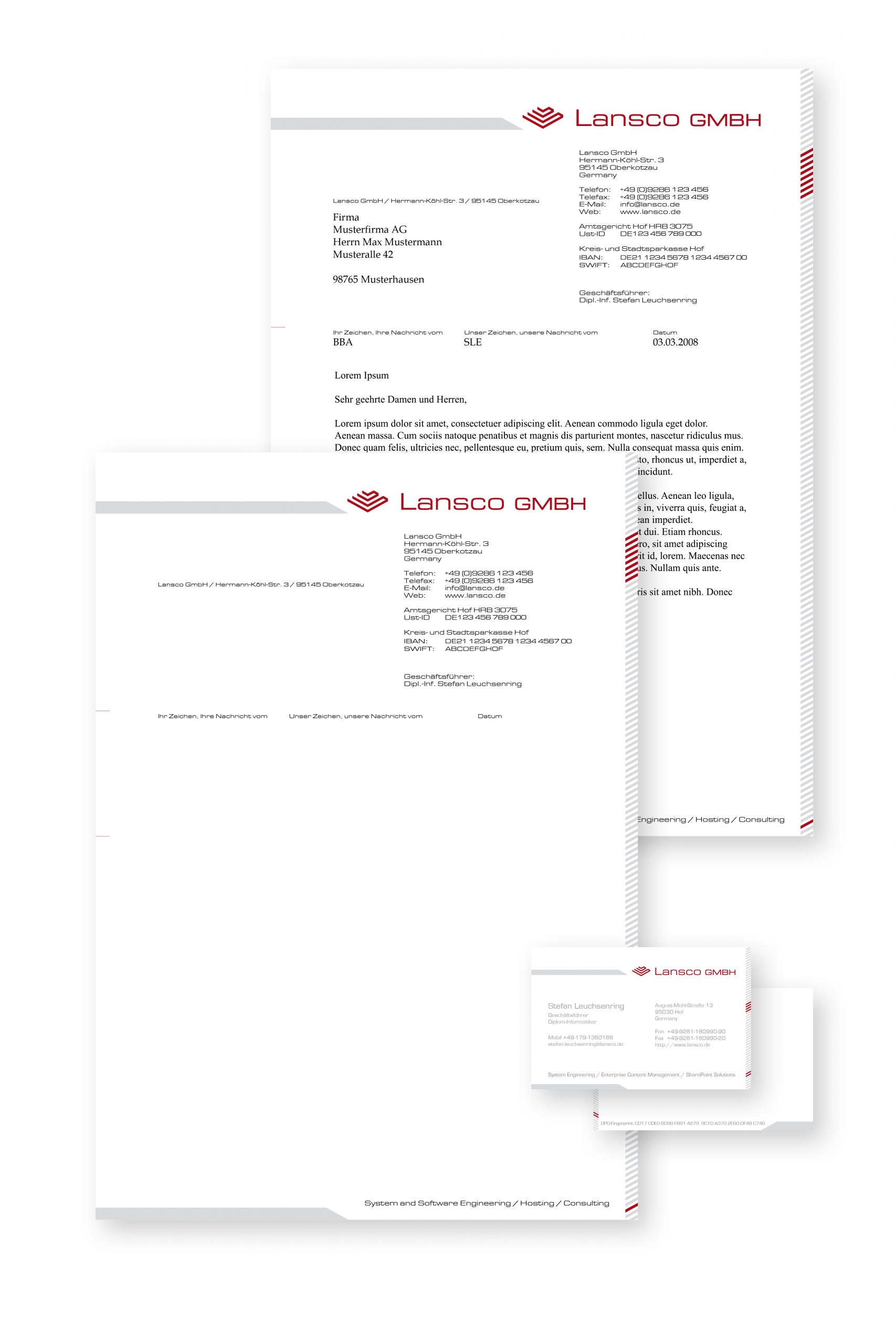 Jede Geschäftsausstattung wird individuell auf Basis des Corporate Designs entwickelt. Bestehende Gestaltungsrichtlinien werden berücksichtigt und professionell weitergeführt.